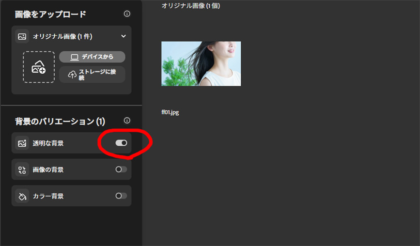 たったこれだけで背景が削除され、透過画像をダウンロードできます。