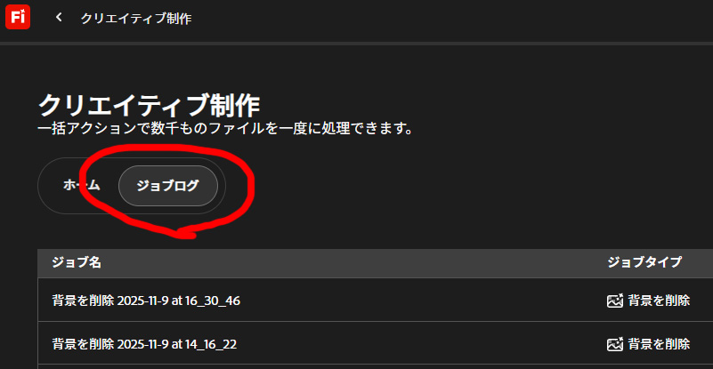 背景削除が完了した画像はジョブログから確認できます。