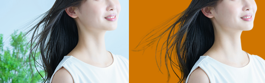 背景削除の精度を確認する上で、一番難しいのが髪の毛の処理です。細い毛先やは切り抜きが難しい領域です。